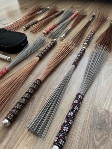 Такой комплект массажных веников можно использовать по разному, например делать вибрационно-звуковой массаж двумя вениками сразу с использованием определенного целебного ритма, можно использовать каждый веник по отдельности. Металлический веник имеет отличие от других веников (что делает их уникальными) своей вибрацией (диапазоном волны). Так же в каждом венике имеется свой небольшой секрет от автора, веники дополнительно настроены на определенные тонкие воздействия, как на тело, так и на сознание. Например, ладка чакральной системы или ядер сознания, создание определенного настроя у человека. В каждом венике имеется набалдашник, что позволяет им делать множество массажных действий, таких как проминание, точечное воздействие на триггерные точки. В рукоятях также дополнительно идет звуковое воздействие. Все веники неповторимы и в каждом свой неповторимый звук частота вибраций и обережный смысл.